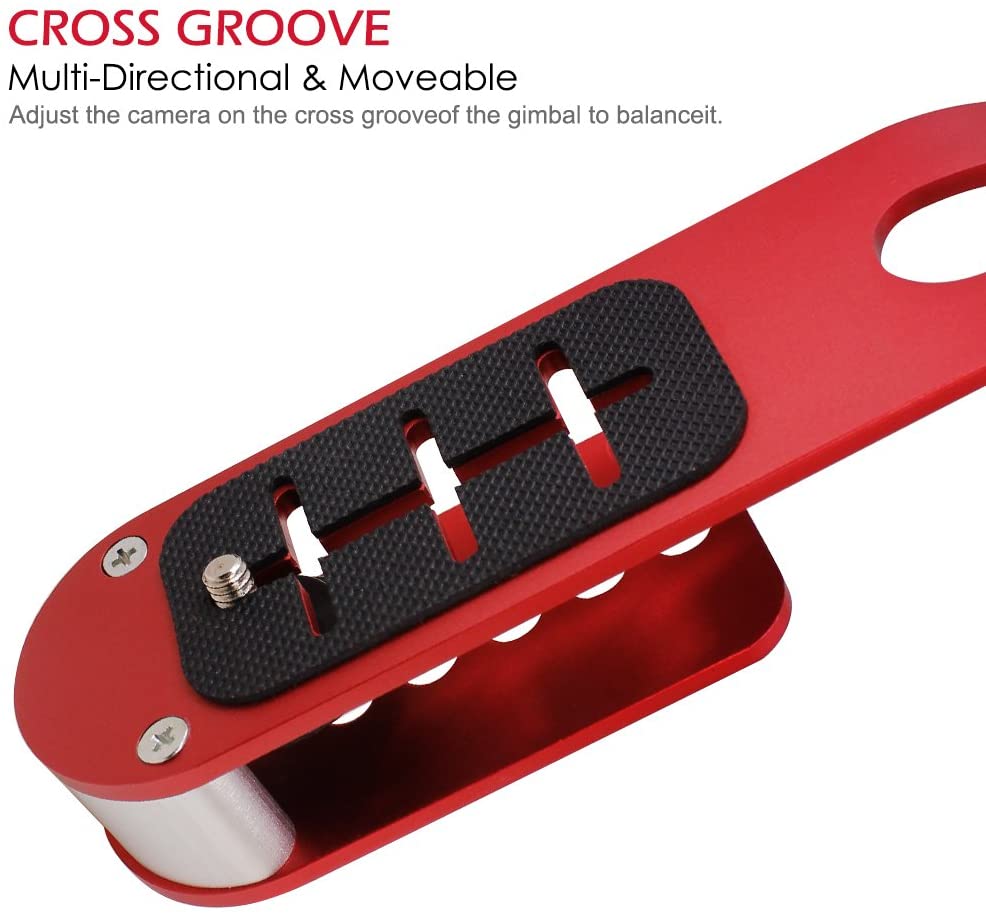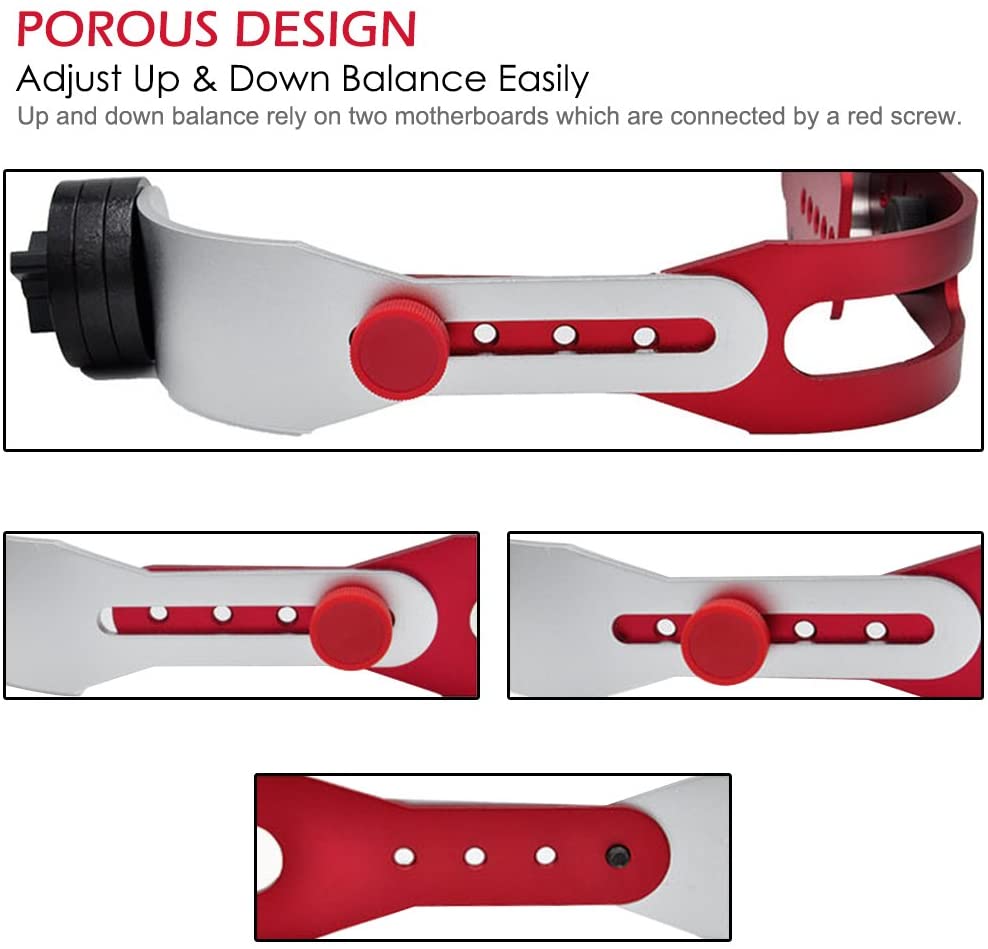 Balance: Red nut can be adjusted up and down, weight can be increased or decreased, the handheld part used to fine-tune, the three parts work together to adjust camera balance.